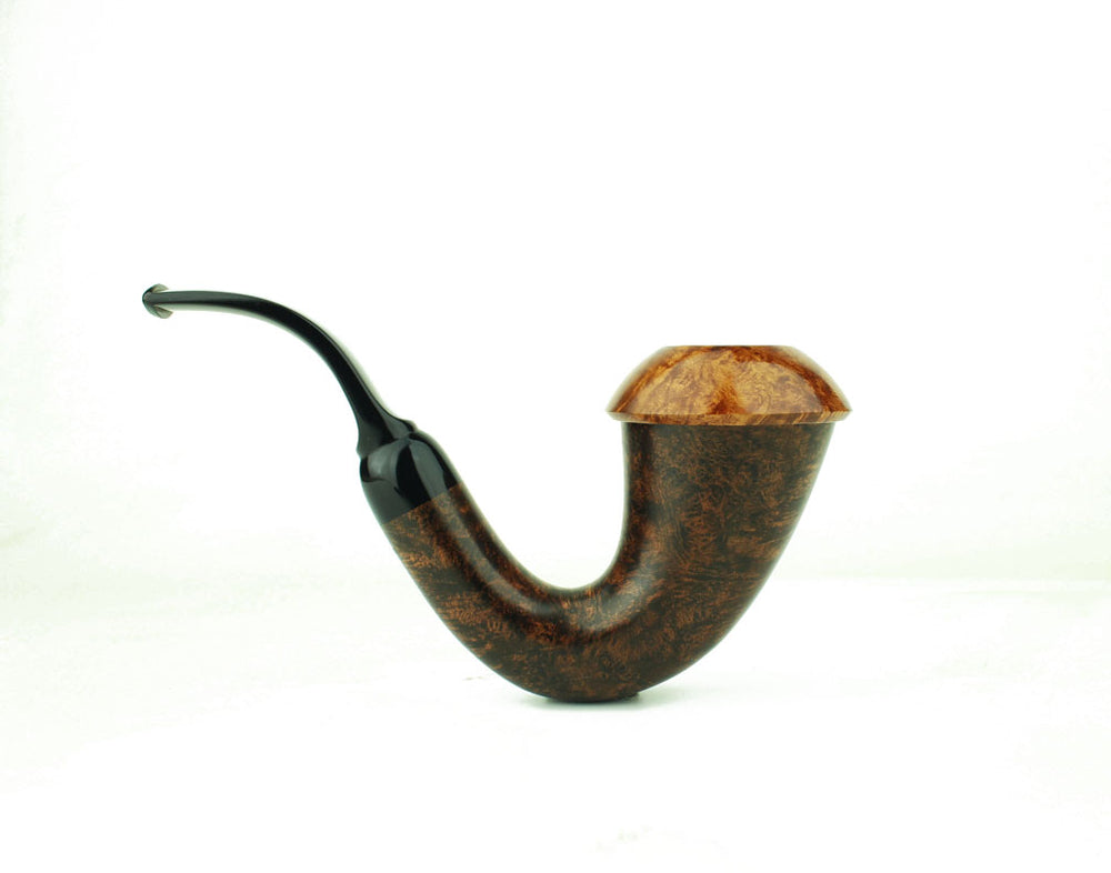 The BriarWorks Signature Mag-Top Calabash was designed by Todd Johnson and is based on his handmade briar calabash. The BriarWorks Mag-Top Calabash features a true gourd calabash style briar body and briar caps affixed with magnets so that they can be swapped to change finish or for dedicating caps to specific blends. The pipe shown is the pipe you will receive.